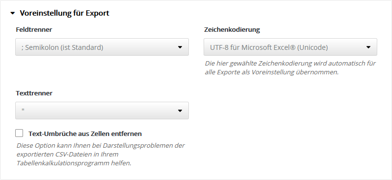 Folgende 'HTML-Editoren' sind in M-Tool integriert und nutzbar: Grundeinstellung ExportHier legen Sie die Voreinstellung für den Export von CSV-Dateien fest, z. B. für den Export von Abonnentendaten. Bei der Durchführung jedes Exportes können Sie bei Bedarf auch eine abweichende Einstellung wählen. Standardeinstellung ist die Option 'UTF-8 für Microsoft Excel® (Unicode)', technisch gesprochen 'UTF-8 mit BOM'. Dieses Format wird von den meisten Officeanwendungen automatisch erkannt, so dass Umlaute und Sonderzeichen ohne manuelle Formatwahl korrekt importiert werden. StatistikeinstellungenTragen Sie Ihre eigenen Maximalwerte ein, um die rot|gelb|grün Farb-Umschaltung der Statistik-Anzeige für Öffungsrate, Klickrate und Bouncerate an die typischen Werte Ihrer Mailings anzupassen. Nur Ihre besten Mailings sollten den grünen Bereich erreichen. Die Farb-Umschaltung erfolgt automatisch in Drittel-Stufen des eingetragenen Maximalwertes. Empfehlung: Notieren Sie aus der Statistik Ihrer bisherigen Mailings die Durchschnittswerte für Öffnungsrate, Klickrate und Bounces. Damit dieser Durchschnittswert zukünftig im mittleren Drittel der Skala landet, tragen Sie das Doppelte dieses Wertes als Maximum in das jeweilige Feld ein. Tragen Sie z. B. 30% als Maximum ein, dann werden anschließend die Werte bis 10% rot, bis 20% gelb und darüberliegende Werte grün gefärbt. Sie sehen sofort, ob Ihr aktuelles Mailing über- oder unterdurchschnittlich abschneidet. Typische Durchschnittswerte: