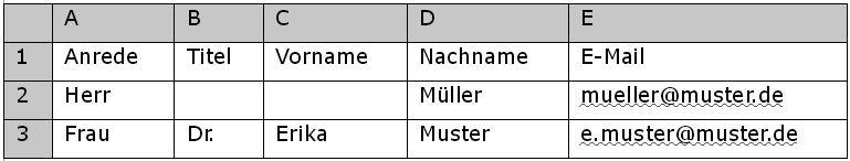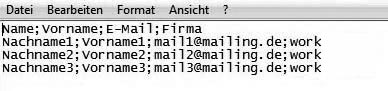 Maybe you have already collected email addresses to which you want to send a newsletter. No matter in which database these information are stored – you only need to save them in a CSV file (for example with Excel) and import them M-Tool. You can pack your CSV file as a zip to accelerate the uploading of large files. That's how it works:In the first line of the table, there should be field names – first name, surname, email address etc. An example: |