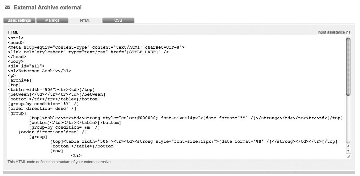 While creating your external archive, M-Tool generates an html source code in the background, which defines the structure of your external archive. If you want to edit the look of your shown archive, you have to edit the source code, which requires appropiate HTML knowledge.