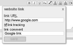 Links can be included via the link icon.