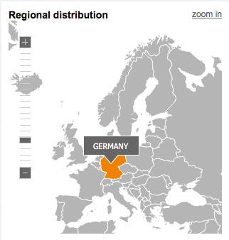 M-Tool generated based on the IP addresses of subscribers an overview of the 'local distribution'. If openings were counted in one country, this will be color coded. By clicking on the country a magnified view appears and cities become visible as points. The larger the dots, the more Openings were counted in this city. Move the cursor over an item, you see the Openings to the location. The data relate to the unique Openings (unique).